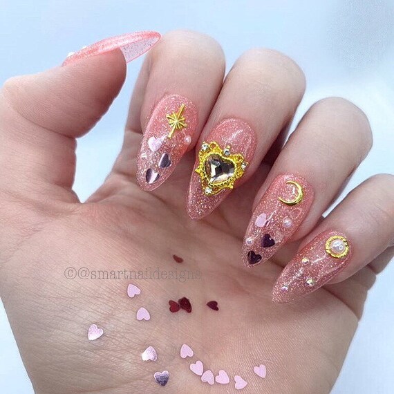 Press On Nails In Jelly Heart Moon Acrylic Nails Kawaii Etsy