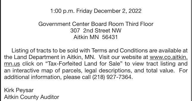 Public Sale Tax Forfeited Land Public Notices Hometownsource Com